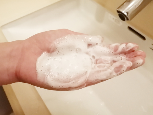洗顔料を手に取る前にハンドソープなどでよく手を洗っておきましょう。手に汚れやメイク落としなどの油分が残っていると、洗顔料の泡立ちが悪くなります。